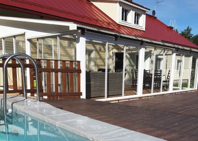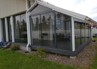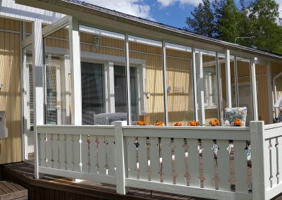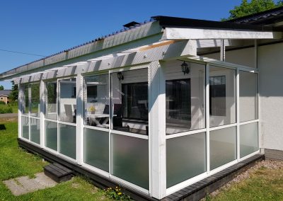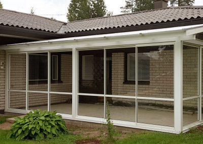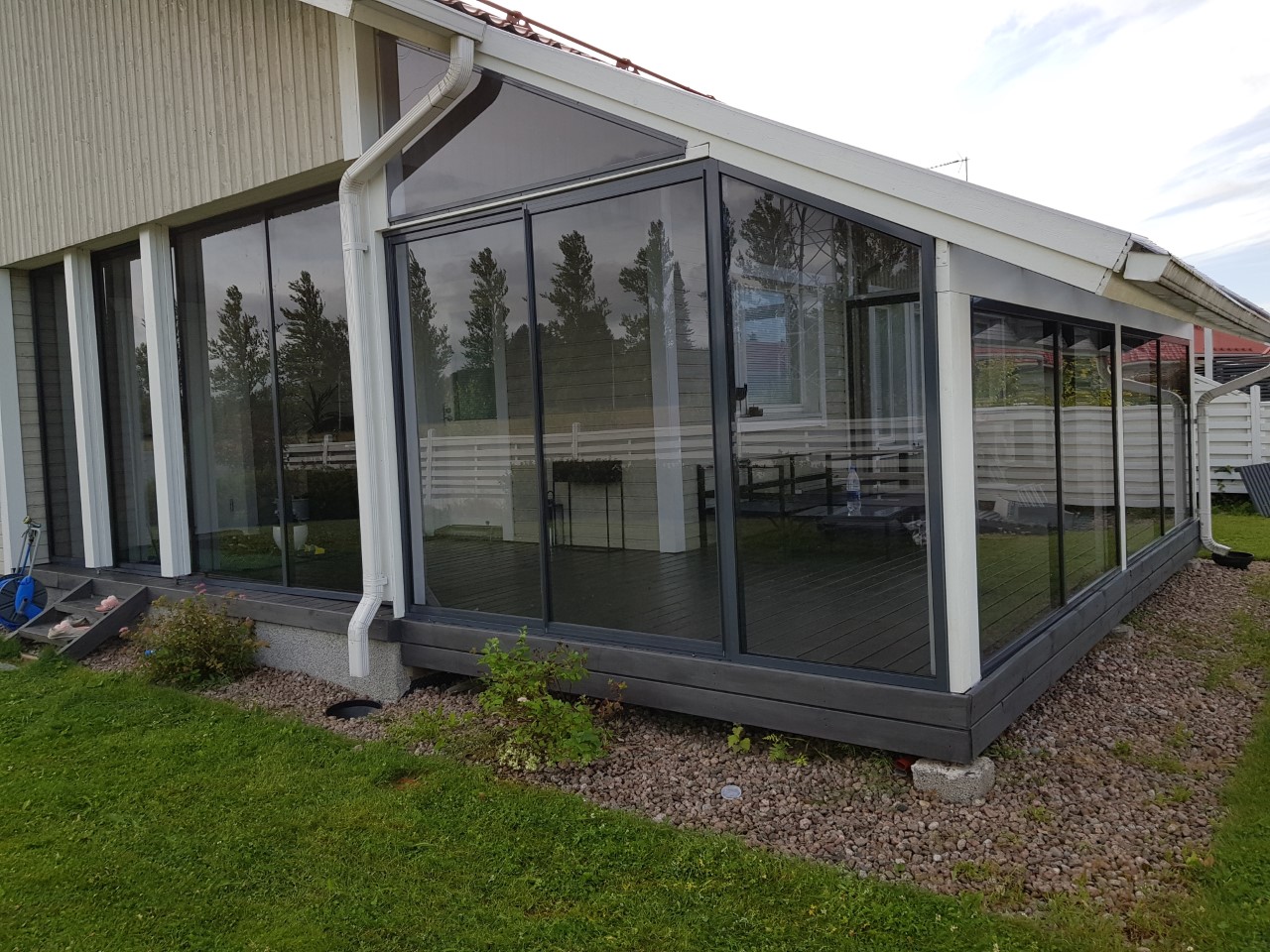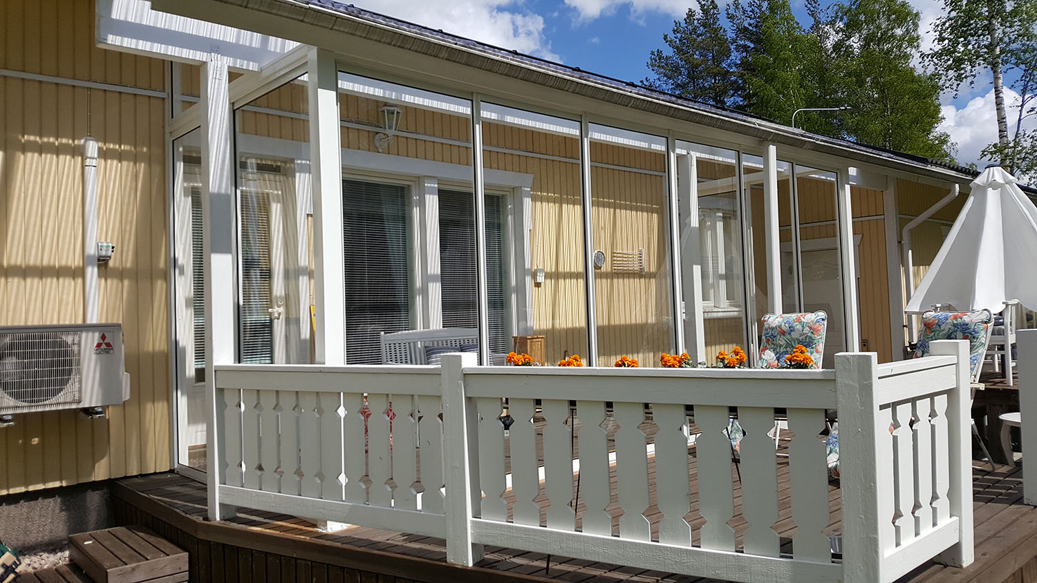 Hanki kotiisi valoisaa ja viihtyisää lisätilaa, jossa voit aloittaa keväästä nauttimisen jo hyvissä ajoin. Keväisin terassilla on mukava viettää aikaa, eikä tarvitse välittää sään aiheuttamista vaihteluista. Myöhään syksylläkin voit vielä nauttia aurinkoisista keleistä, vaikka ulkona olisikin jo vilpoisa keli. Talvella taas lasitettua terassia voi käyttää säilytystilana, jossa ulkokalusteet säilyvät hyväkuntoisina poissa sään armoilta.